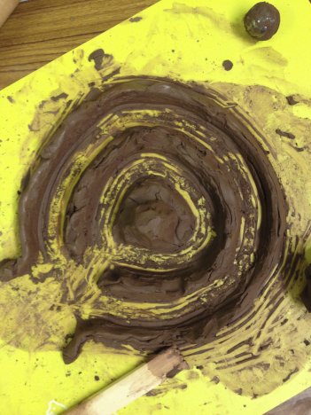 We made prayer labyrinths out of clay, a full size labyrinth walk is used to assist prayer and meditation. The walker slowly walks the labyrinth path quietly, often in prayer or focusing on a spiritual question. A labyrinth has only one path to the center, unlike a maze which has dead ends (Ok ours might have had a few dead ends). We looked at finger labyrinths, same principle but you follow it with your finger on a piece of paper. We used a lump of clay and made routes into it so that you could roll a marble around it.